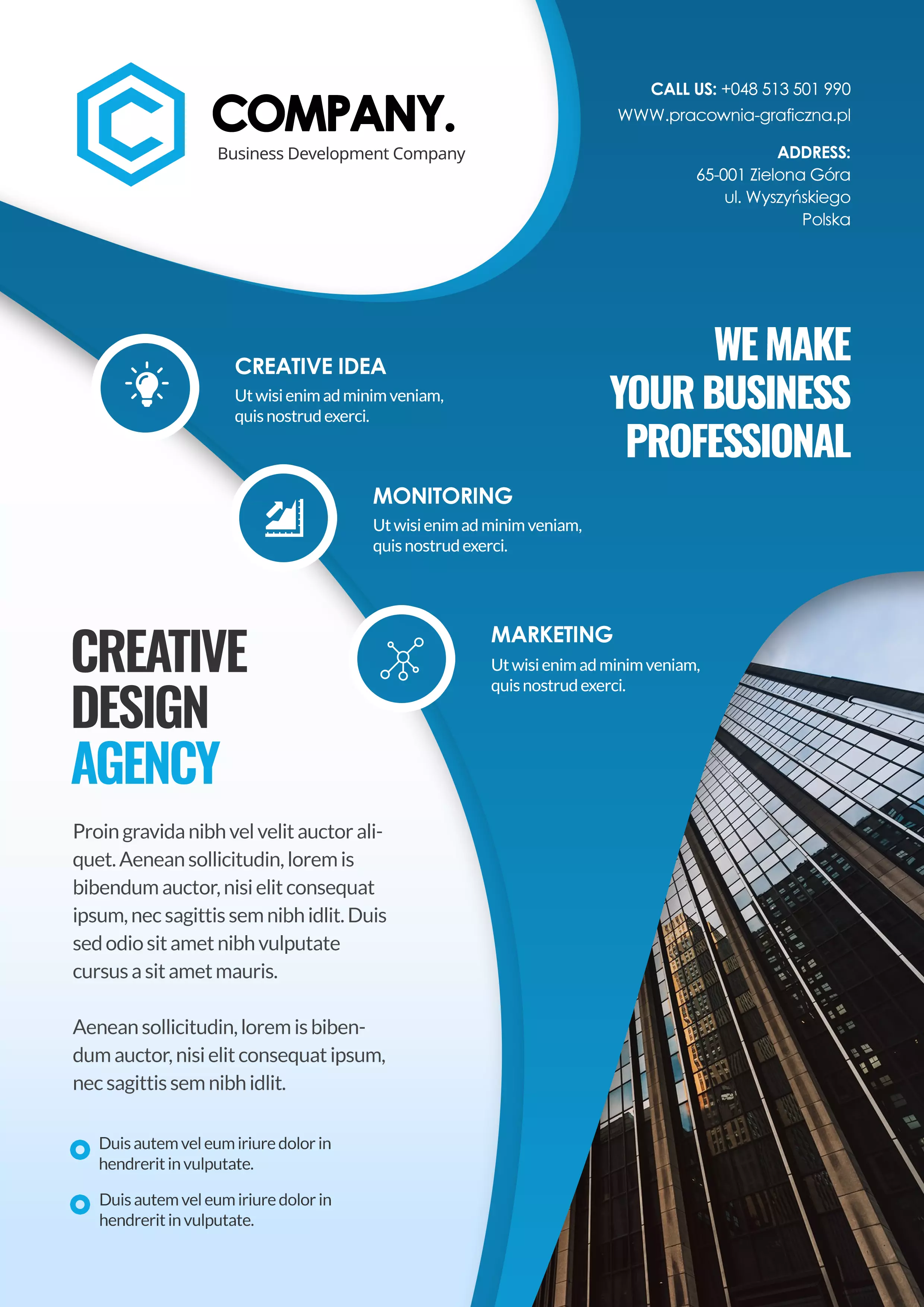 - Projekty plakatów i ulotek są dostępne wyłącznie dla zarejestrowanych klientów PIXEL TAXI.